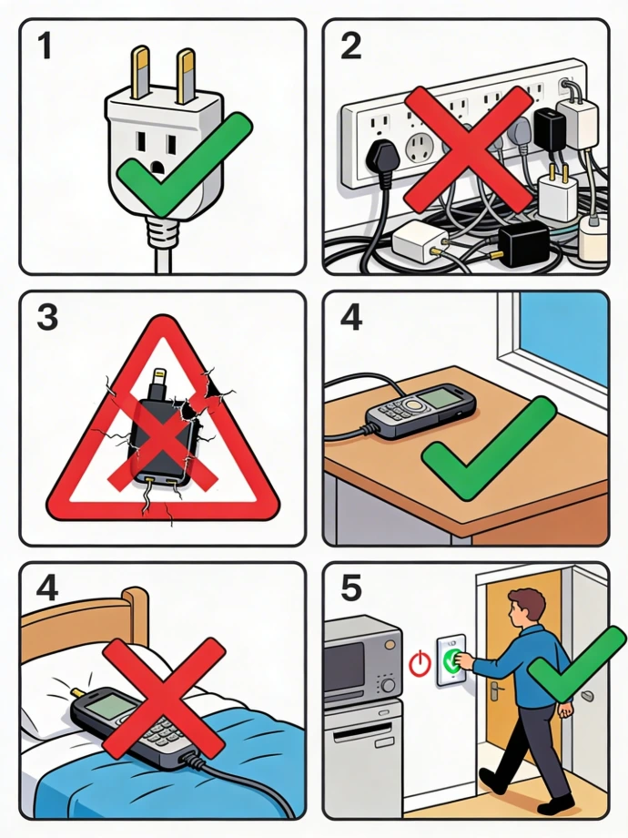 ✔ Hasarlı şarj cihazlarını hemen değiştirin
